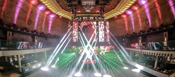 A multi-level venue, Exchange is housed in the former Los Angeles Stock Exchange building with six bars spread over four levels, plenty of smoking areas and more bathrooms than any club in LA. The first floor has a small bar and bathrooms with a beautiful staircase that takes you directly to another bar and the main dance floor. In the massive bronze doors going up the stairs you can see a huge Insomniac logo glaring. Getting a drink there is no issue. The forty-foot ceilings and the massive LED screen catch your eye immediately as you enter the second floor. To top it off, there is a third floor VIP area with 3 bars that gives you a bird's eye of the entire dance floor and DJ booth, not to mention the incredible sound system that makes you want to lose yourself.