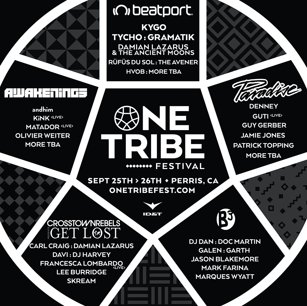 ID&T (the entertainment company behind Mysteryland and Tomorrowland) has partnered up with B3 to bring a new two day festival to Southern California called One Tribe taking place September 25-26th. Lake Perris has been revealed as the location and lies just about an hour away from Orange county, Los Angeles, and San Diego. A scenic background and central location to every big Southern California city should provide an amazing atmosphere. One Tribe will be the perfect hybrid between the underground and the mainstream, featuring stages from Beatport, Awakenings, Crosstown Rebels (Owned by Damien Lazarus), Paradise, and B3. The line-up is featured below features huge names like Kygo, Jamie Jones, and Damian Lazarus with more yet still to be announced. In addition to everything prior, the very popular Desert Hearts crew will provide their own musical showcase Friday September 25th at the festival campgrounds. Check One Tribe out if you want a different take on the current festival scene! Tickets went on sale today so click here for the link! Check out the trailer below!