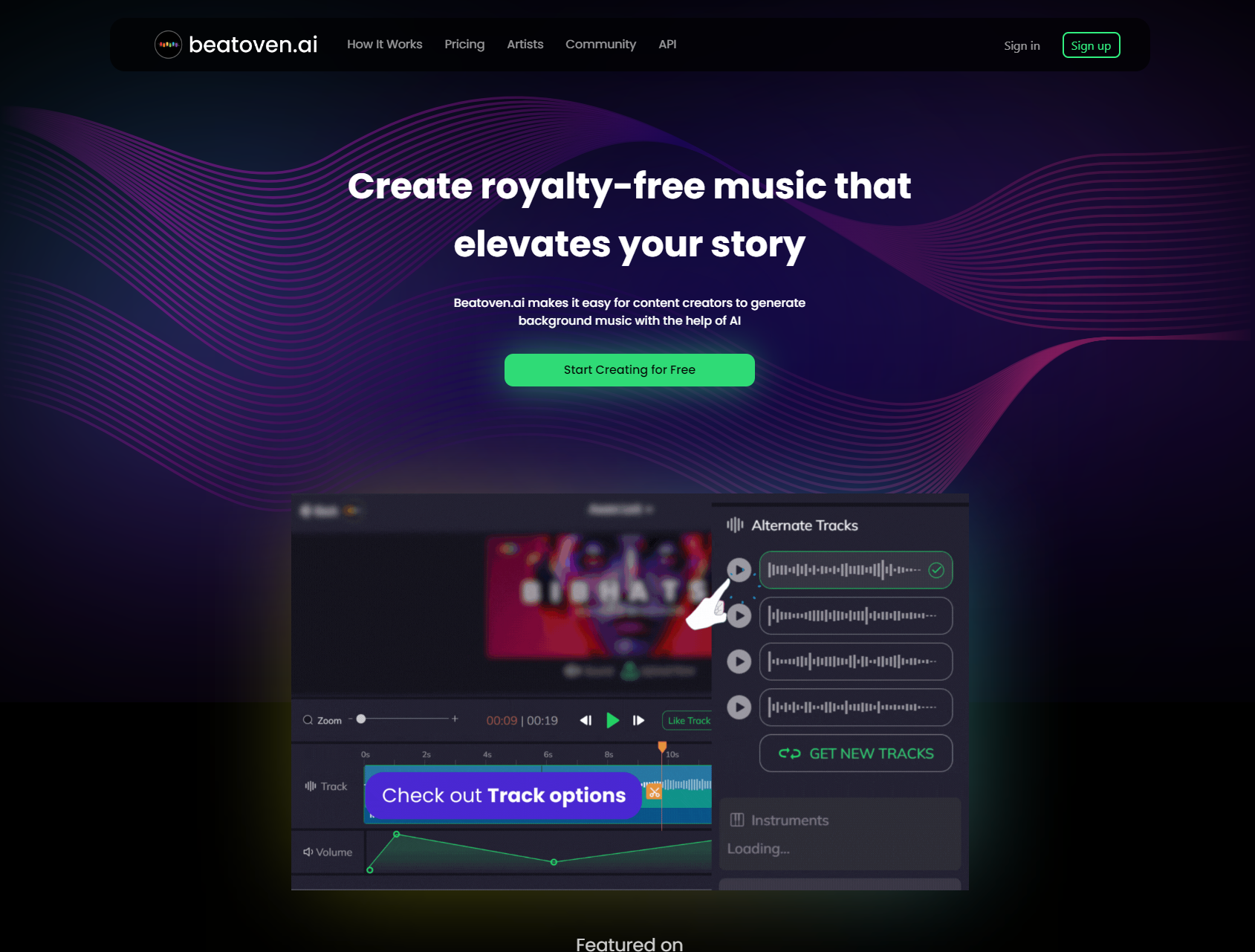 | Beatoven | Web platform to create AI music by customizing genre, structure, etc. | Intuitive controls; advanced editing features; lyrics support | Vocal quality lacks polish; lyrics dubious meaning |