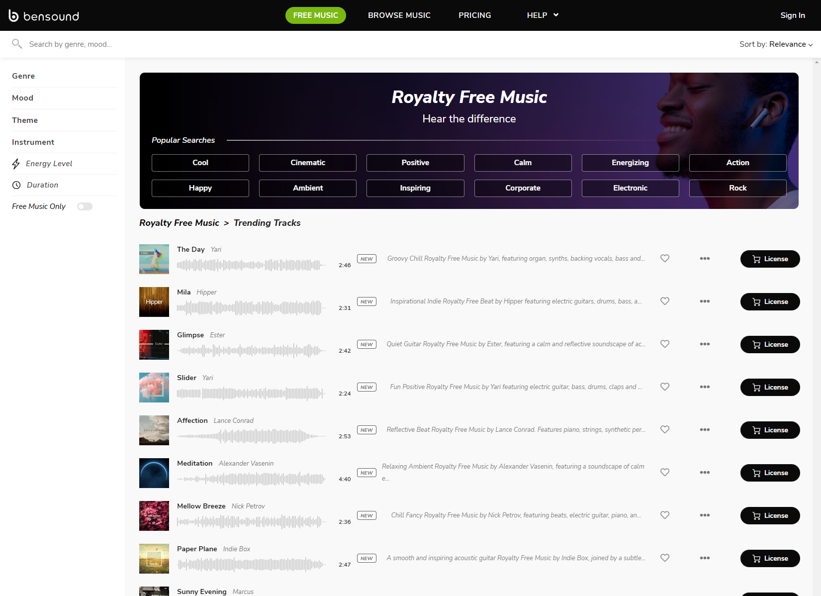 Bensound is a great resource for filmmakers looking for royalty free music without breaking the bank. They offer a wide range of genres, from jazz to rock and hip-hop, at very reasonable prices.