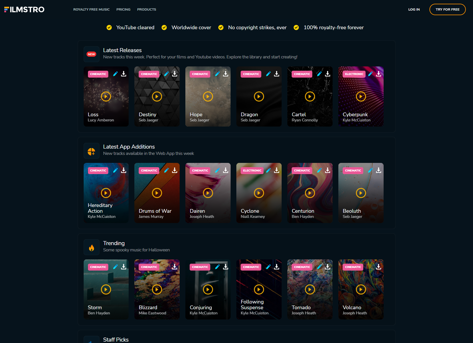 Filmstro is a great resource for filmmakers and video editors looking for royalty free music. They offer an extensive selection of tracks, from cinematic soundscapes to upbeat pop tunes, all with customizable features like key-shifting and intensity curves.